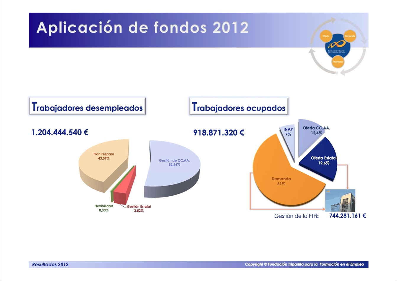 La Formación de los trabajadores desempleados y la de los trabajadores ocupados se gestiona mediante «convocatorias subvencionadas» en las que participan Organizaciones Sindicales, Asociaciones representativas de Empresarios y Entidades de Formación Acreditadas y, gracias a ellas se han formado otros tanto millones de españoles.